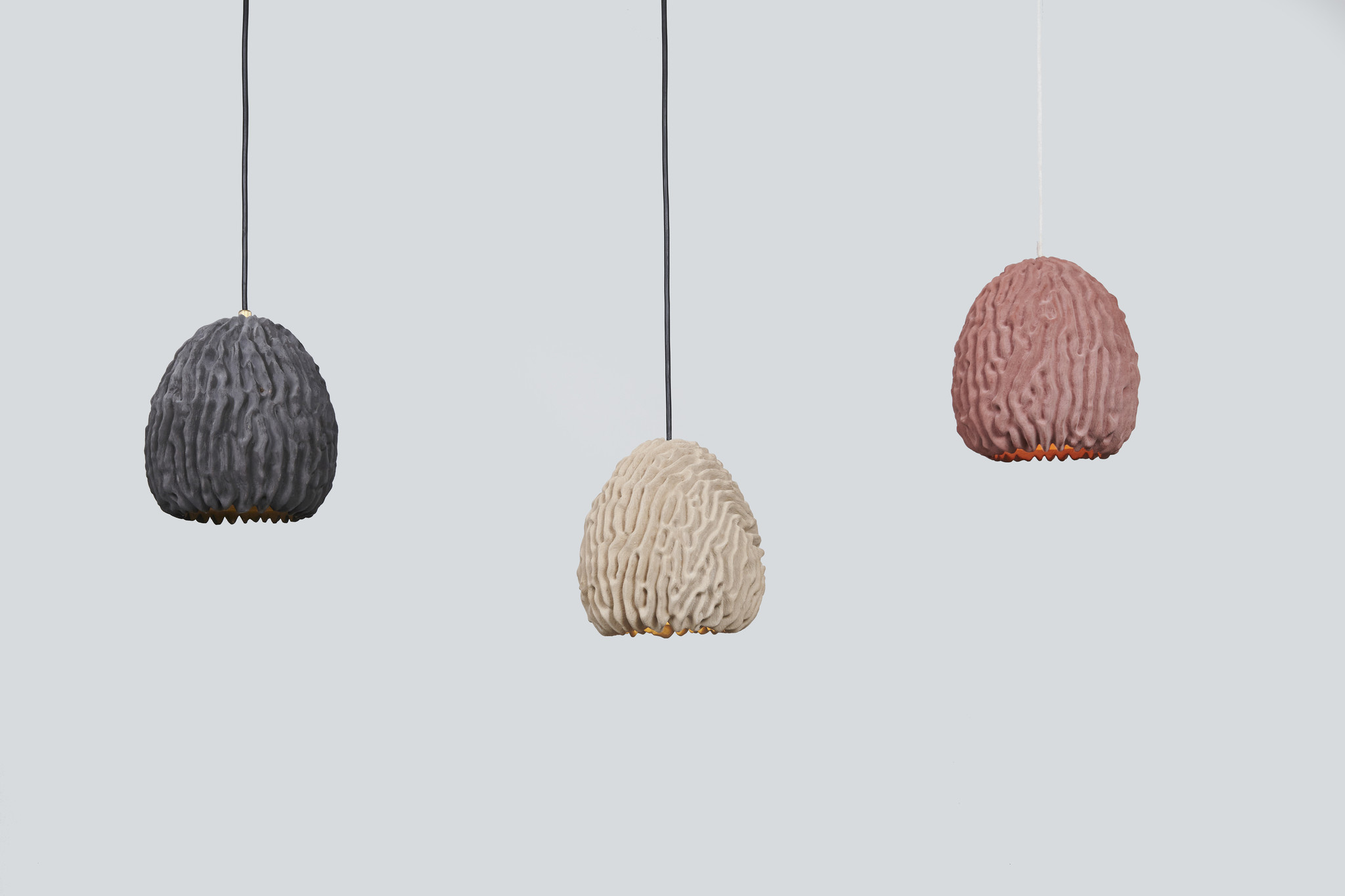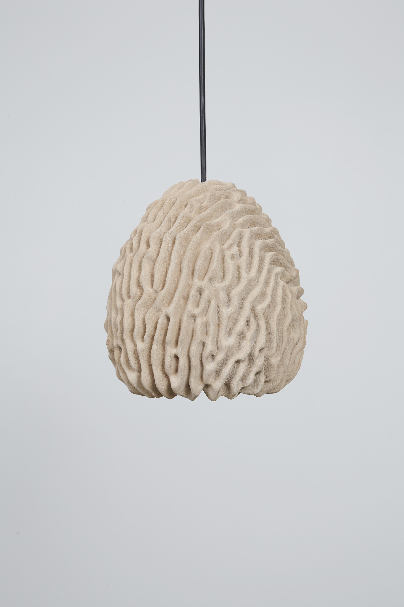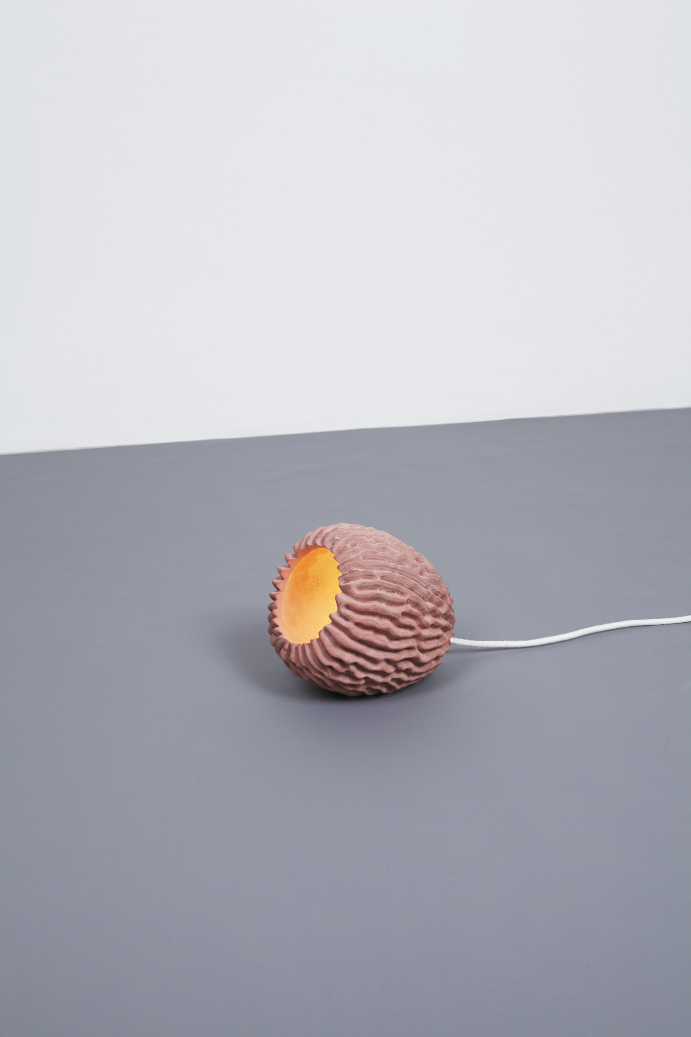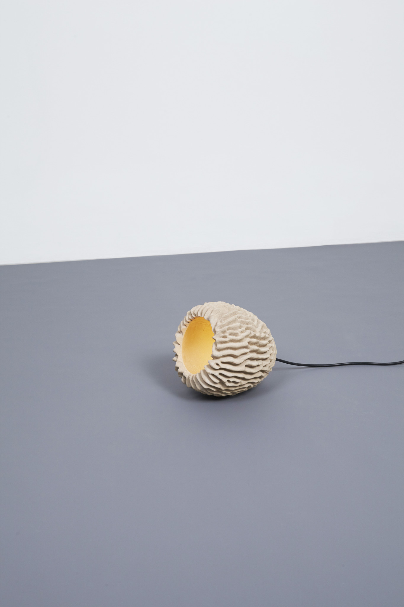 The Coral Light’s skin refers to coral reefs we find in our seas and oceans. A rather precise and new 3D printing technique is used to create the lamp’s body consisting of waste stone powders.