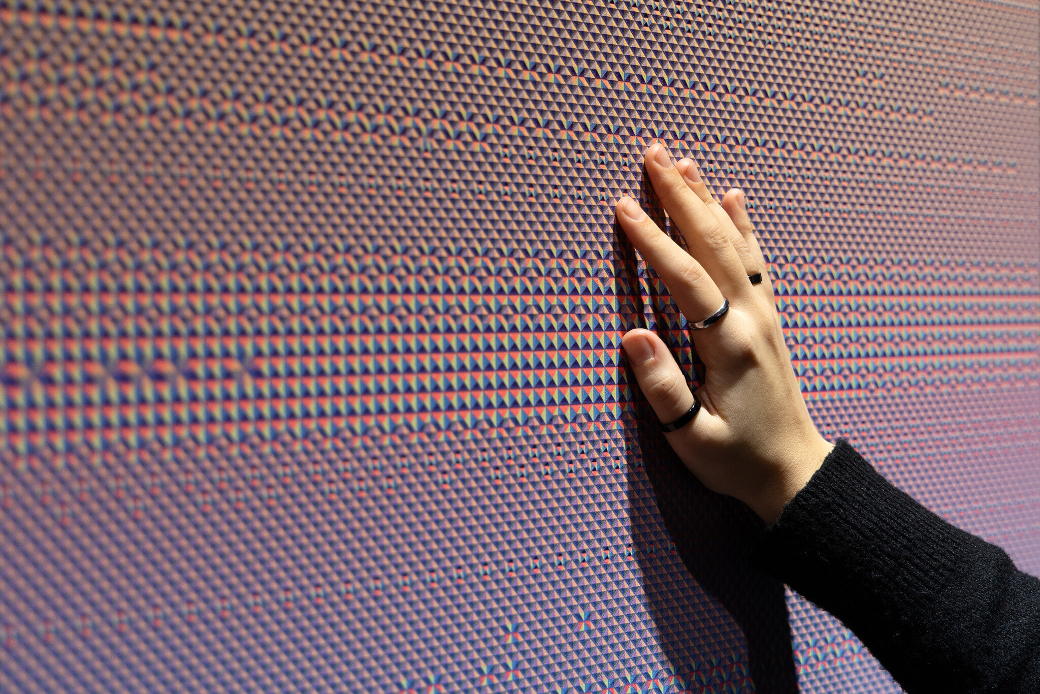 Using scientifically inspired micropatterned textures that shift in color depending on the viewer's perspective, the experience of space is transformed—boosting comfort, concentration, and sensory engagement.