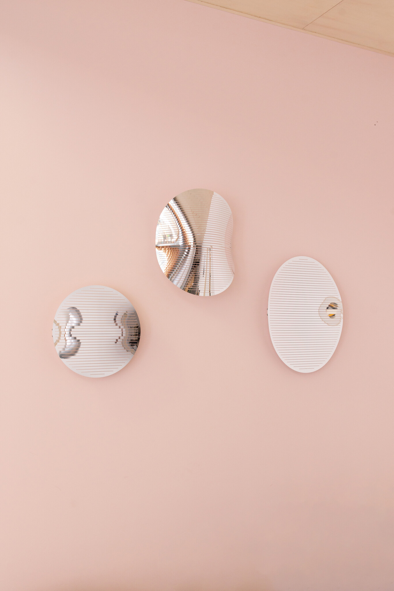 Conventional mirrors are known for replicating their surroundings, presenting a faithful reflection of the world as we see it. The Echo mirrors, on the other hand, challenge this norm by reshaping reflections into a reinvented version of reality. Using fragmented surfaces, these mirrors distort their surroundings, producing an altered and unexpected visual experience that is both surprising and abstract.