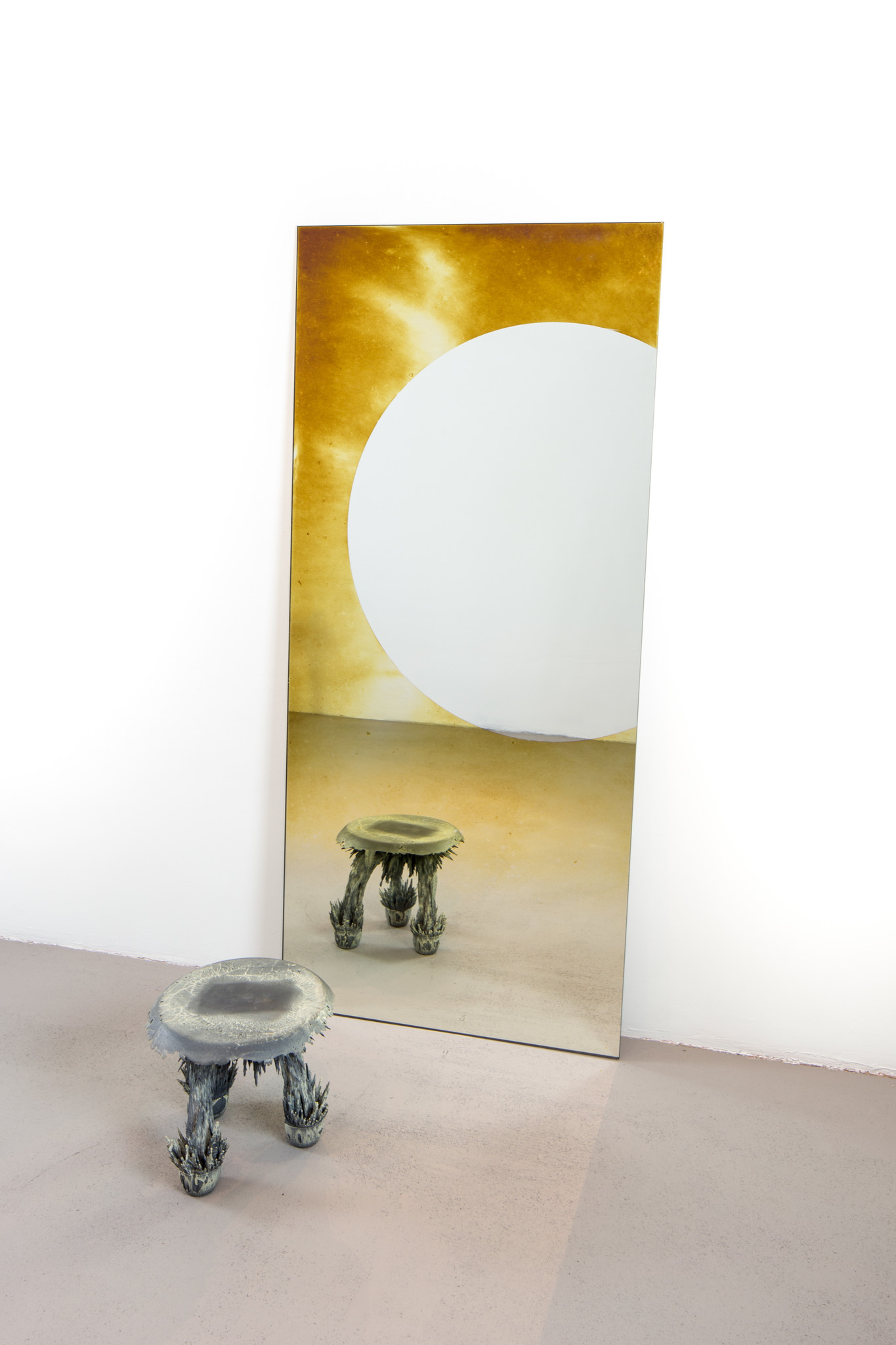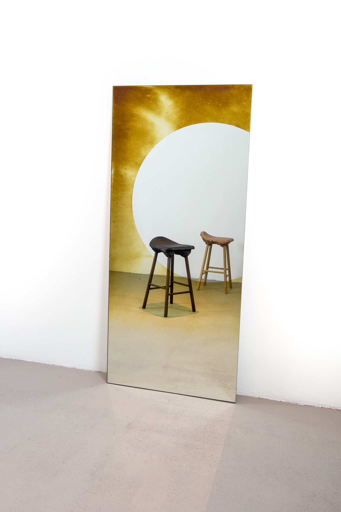 The Transience Mirrors series reveal different states of oxidation through an accelerated process. Depending on the time that the silver is treated, different colour tones can be achieved.
