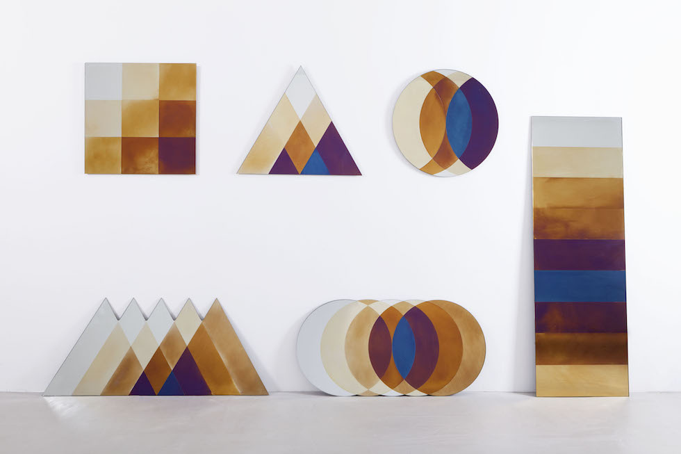 The Transience Mirrors designed by Lex Pott and David Derksen reveal different states of oxidation through an accelerated process. All (custom designed) mirrors are handmade and the oxidation patterns look slightly different on each piece. This roughness in oxidation and the clean geometrical aesthetics make each design mirror truly unique and beautiful.